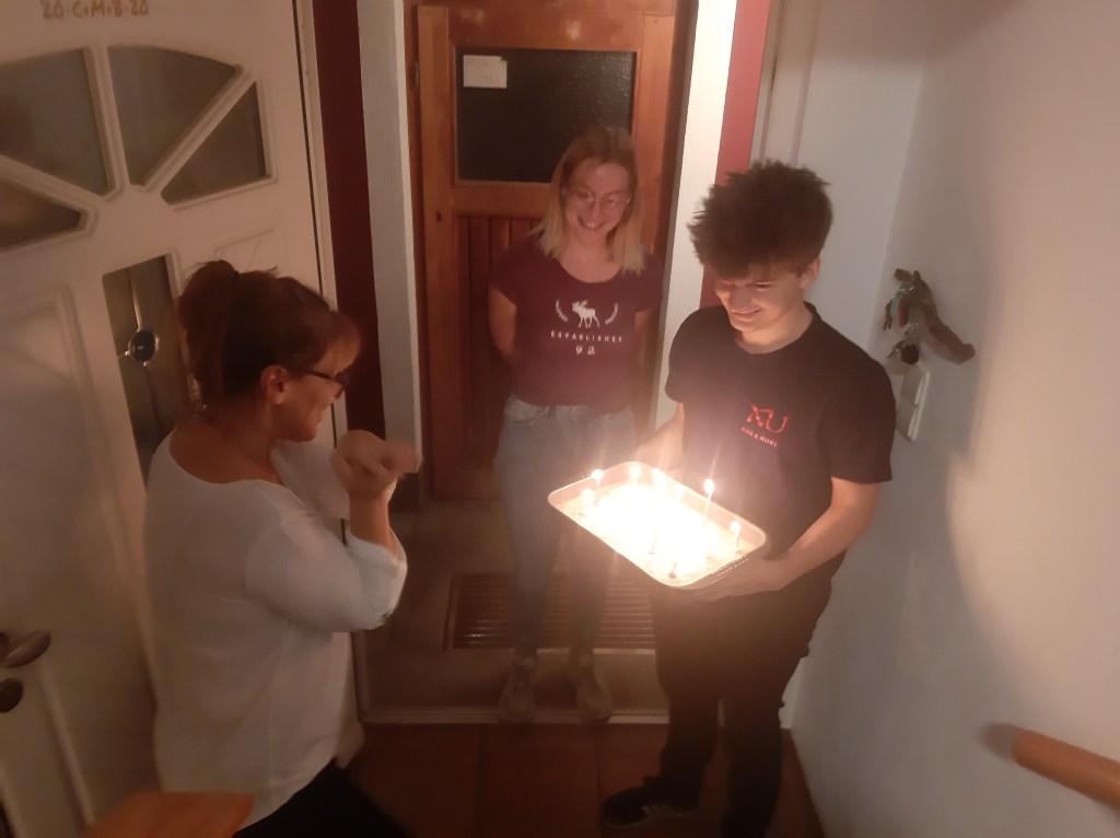 Heute war es eigentlich sehr schön in der Arbeit. Nur es war gestern ein Terroranschlag in Wien und das war alles sehr spannend. Auch heute waren sehr viele Polizei Autos unterwegs in Linz, denn die Polizisten haben auch in Linz wen gefunden, der mit diesem Terror vielleicht in Verbindung war. Nach der Arbeit hab ich dann noch Blumen gekauft und Xaver und ich sind dann auch schon nach Hause gefahren und haben Geburtstag gefeiert von Mama. Um circa halb 7 ist dann Niklas und Alex gekommen, die haben einen Kuchen gemacht und jetzt sind wir gerade unter dem Essen und es wird hoffentlich noch ein schöner Geburtstagsabend für Mama.